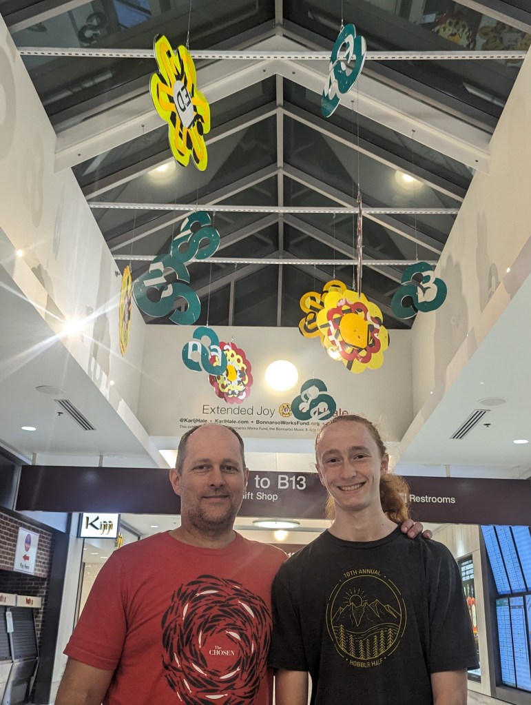 “Extended Joy” is created from recycled street signs cut and layered into a cascade of flowers and symbols familiar to all Bonnaroovians. Traffic signs were ideal for this installation because they are UV-resistant, durable, and safe. They also add a touch of whimsical charm that reflects Bonnaroo’s magical atmosphere.