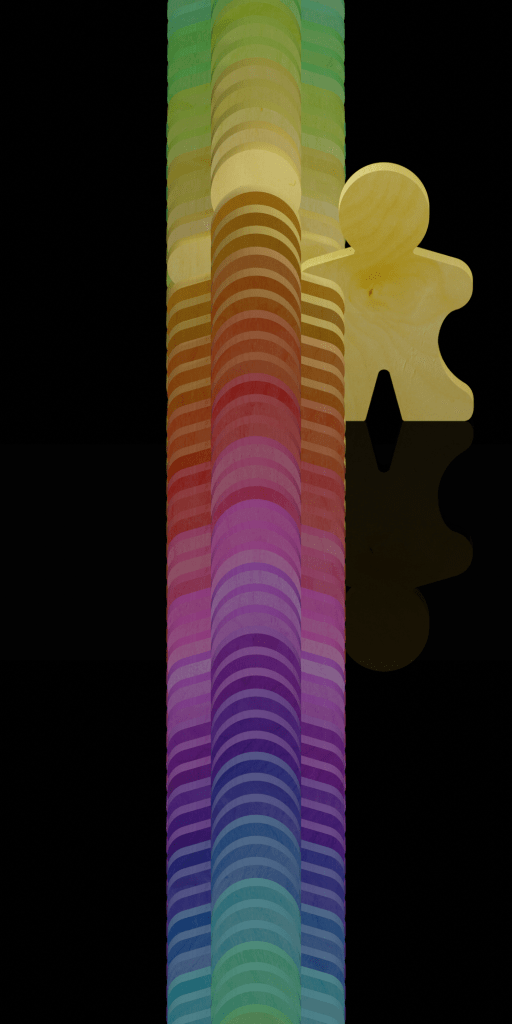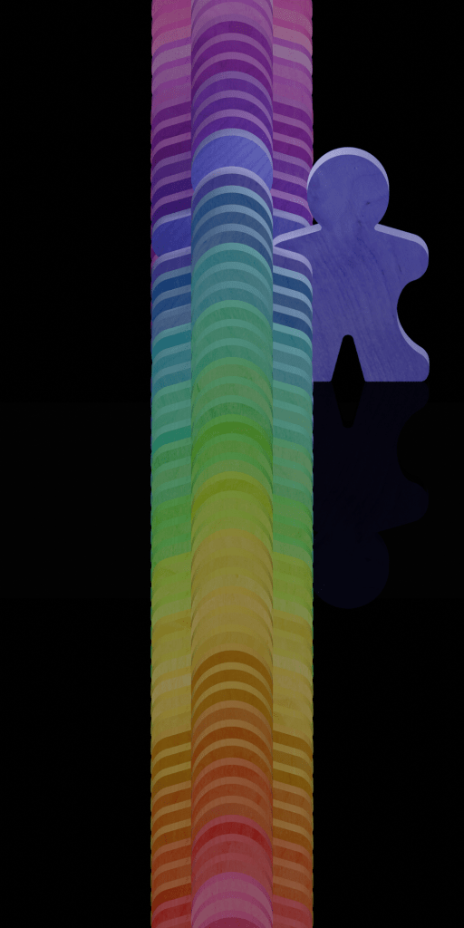 “Out of Line” is a collection of eight images, each with a different Stand-Out color: Red, Orange, Yellow, Green, Blue, Purple, Pink, and Baby Blue.